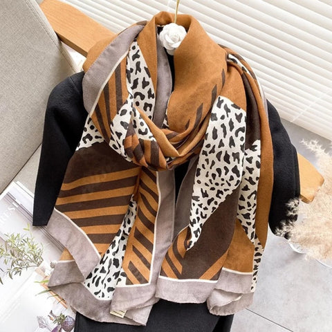 2022 Leopard muslim cotton warm scarf for ladies Inpluser